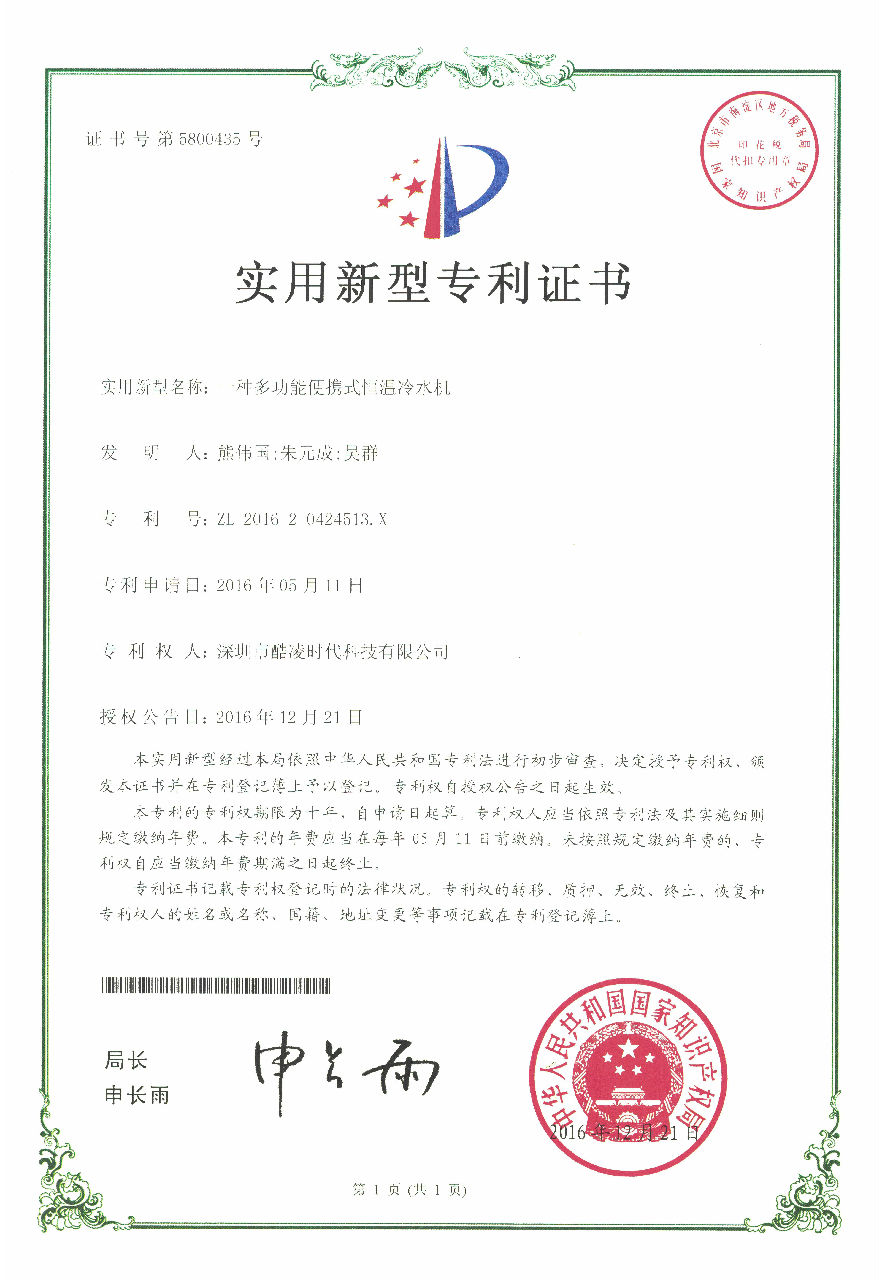 實(shí)用新型專利證書-1